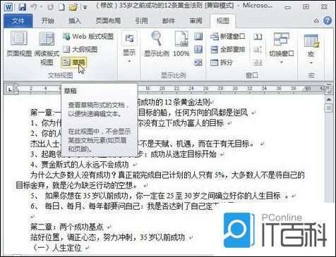 草稿视图 “草稿视图”取消了页面边距、分栏、页眉页脚和 图片 等元素,仅显示标题和正文,是最节省计算机系统硬件资源的视图方式。当然现在计算机系统的硬件配置都比较高,基本上不存在由于硬件配置偏低而使Word2010运行遇到障碍的问题。